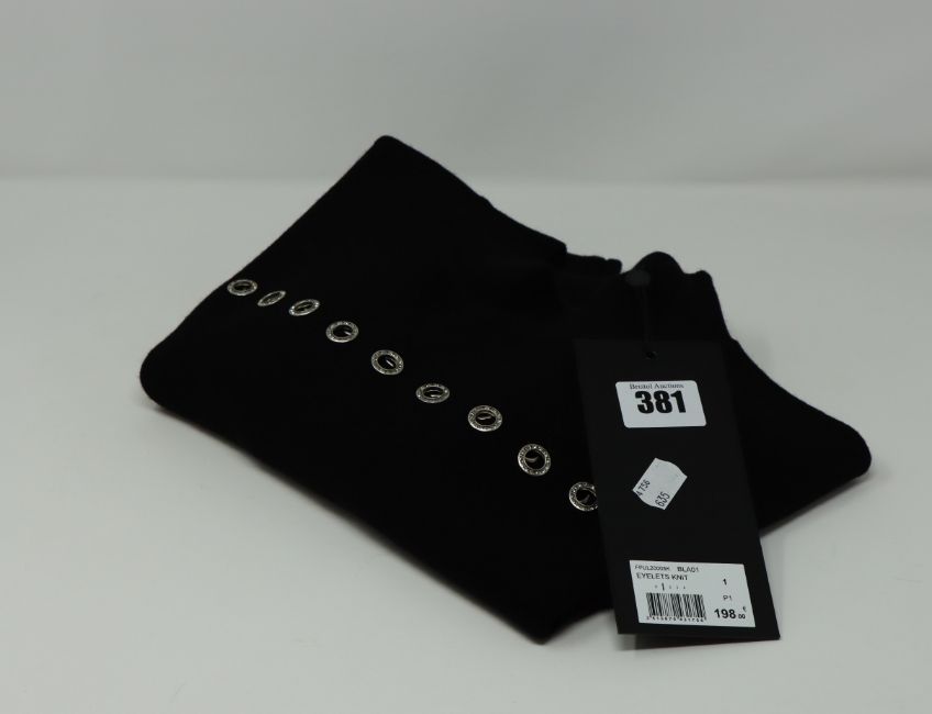 One as new Kooples X-Sport Merino Formal Wool Black Sweater With Grommets size 1 (FPUL20008K).