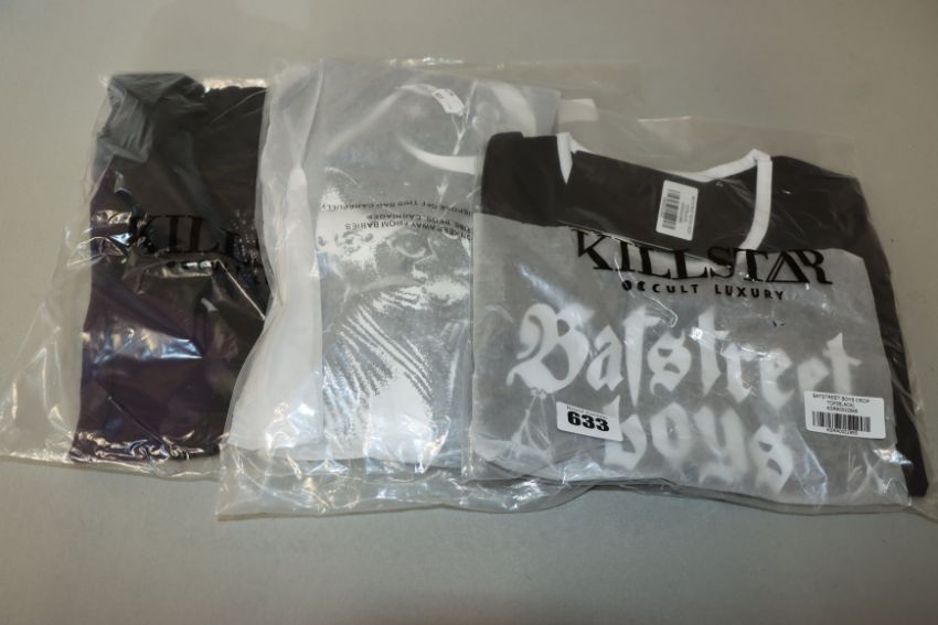 One as new Killstar Umbra leggings size XS. One as new Killstar Backstreet Boys crop top size S. One as new Killstar Avalyn plum top size S.
