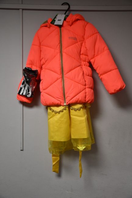 One girl's as new Name It Nkfmilton Puffer Jacket Camp size 8yr. One as new Jerris Apparel Princess Belle Costume size EU 100. One as new Fortun London big logo t-shirt size 3-4yr.