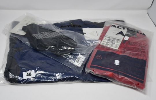 One men's as new Altura Thermo Stretch 3 Neoprene Gloves size S (AL18THNBS8). One as new Altura Firestorm Gilet size 2XL (AL20FIR52XL). One as new Altura Nightvision Tornado Jacket size M (AL22TOR1M).