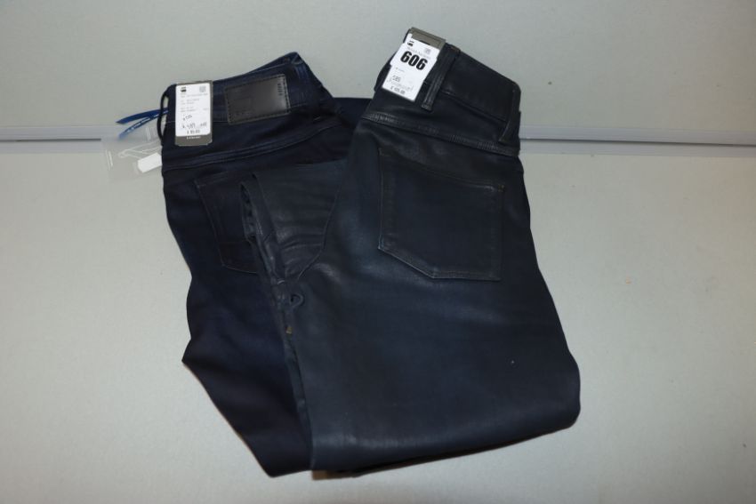 One as new G Raw Knee zip high women skinny jeans (Colour: Worn in tidal cobler. Size 25/30. Model: 5622). One as new G Raw High women skinny jeans (Colour: Dark aged. Size 25/32. Model: 3301. Security tag still attached).