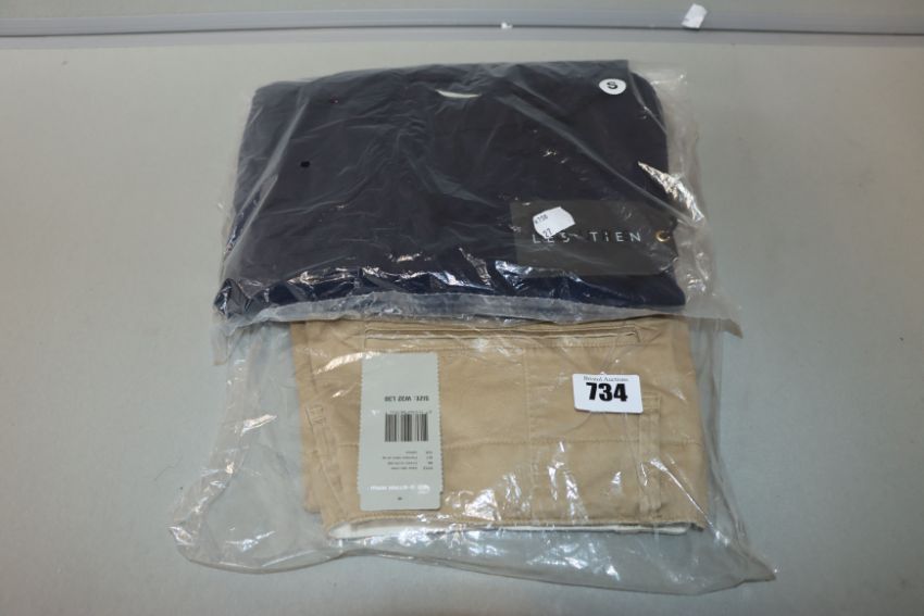 One as new Les Tien long sleeve shirt. Colour: blue. Size: S. One as new G-Star Raw Vetar Slim Chimo trousers size W32 L30. Colour: Sahara.