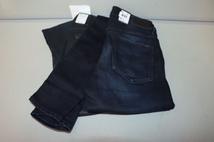 One as new G Raw Knee zip high women skinny jeans (Colour: Worn in tidal cobler. Size 27/32. Model: 5622). One as new G Raw High women skinny jeans (Colour: Dark aged. Size 27/34. Model: 3301).