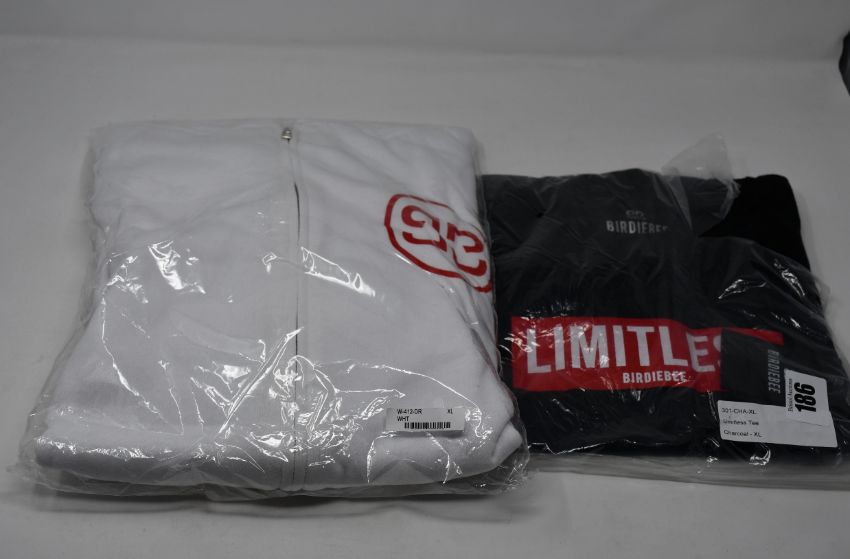 One as new Birdiebee Limitless black t-shirt size XL. One as new Birdiebee Red Double B Chill Zip Hoodie size XL.