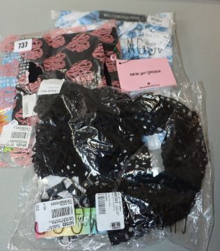 One as new New Girl Order Queen of Recycling t-shirt size 10. One as new Current Mood Freak Like Me Fishnet Shrug size XS. One as new Current Mood Werk of Art Mesh Dress size M.