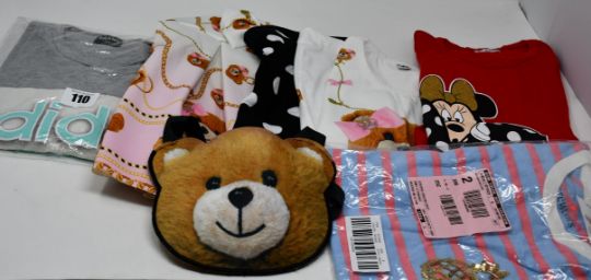 One as new Terry bear bag. One as new Minnie headbands (no tags). One as new Teddy bear headbands (no tags). One as new This is Not a Bear Toy skirt size 7-8 (No tags). One children's as new This is Not a Bear Toy t-shirt size 7-8 (No Tags). One children's as new Minnie kids t-shirt size 7-8 (No tags). One children's as new Polka Dot short size 7-8 (no tags). One as new Adidas Logo t-shirt size 7-8. One as new Crewcut striped sequin critt shirt size 8.