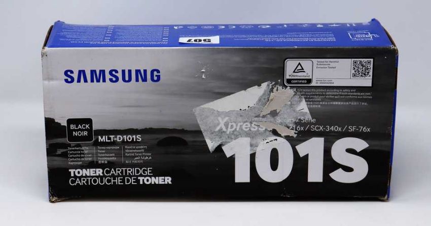 A boxed as new Samsung MLT-D101S (SU696A) Black Toner Cartridge (Box sealed, superficial damage to box).