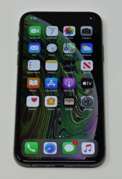A pre-owned Apple iPhone Xs (Global/A2097) 256GB in Space Grey (iCloud activation lock clear,damaged screen glass) (Checkmend report ID: CM16547237-5BE65).