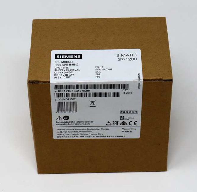 A boxed as new Siemens S7-1200 PLC CPU (P/N: ES7214-1BG40-0XB0) (Box sealed).