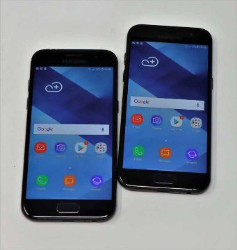 Two pre-owned Samsung Galaxy A3 2017 (SM-A320FL) 16GB in Black (Both FRP clear. Both with damaged screen glass. Sold for spares or repair).