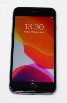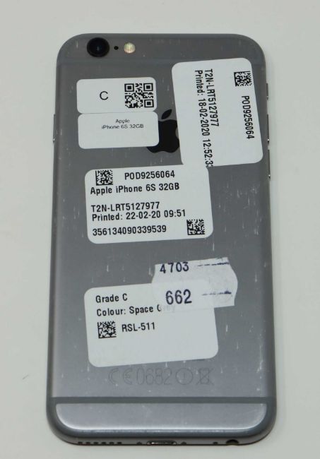 A pre-owned Apple iPhone 6s (Global/A1688) 32GB in Space Grey (iCloud activation lock clear, scratches to screen glass) (Checkmend report ID: CM16545335-7EE08).