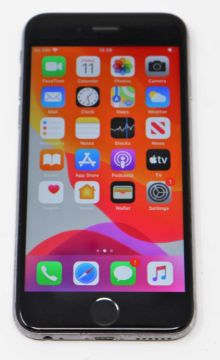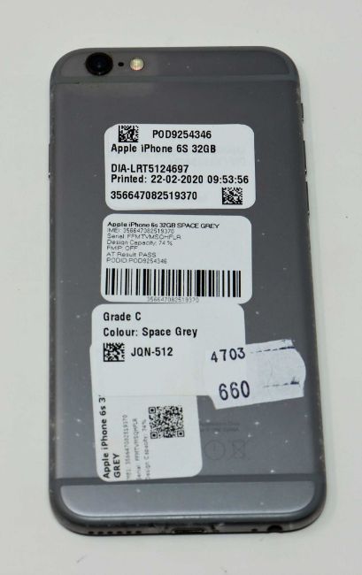 A pre-owned Apple iPhone 6s (Global/A1688) 32GB in Space Grey (iCloud activation lock clear, scratches to screen glass) (Checkmend report ID: CM16545224-96232).