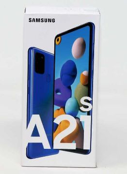 A boxed as new Samsung Galaxy A21s A217F/DS 64GB in Blue (Box sealed) (Checkmend ID: CM16536074-9AA74).
