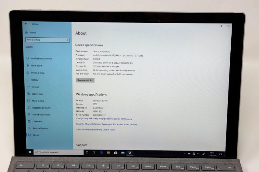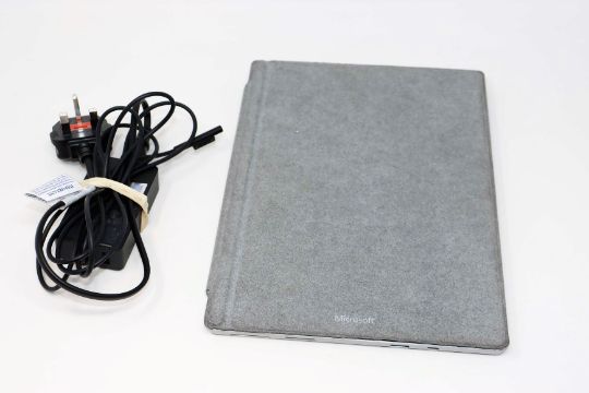 A pre-owned Microsoft Surface Pro (5th Gen) with Intel Core i5-73000U 2.60GHz, 8GB RAM, 256GB Storage running Windows 10 Pro (Wiped and reset) (Keyboard (cosmetic marks to fabric) and power supply included).