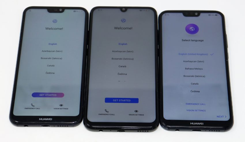 Two pre-owned Huawei P20 Lite ANE-LX1 in Black (both FRP locked. One with damaged back casing, scratches to screen glass) and a pre-owned Huawei P smart (2019) POT-LX1 in Black (FRP locked) (All sold for parts only).