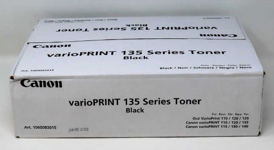 A boxed as new Canon varioPRINT 135 Series Toner - Black (2x 1.5KG bottles) (Art No: 1060083015 Code: 6117B004[AA]. Packaging sealed).