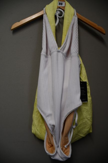 One as new Faithfull The Brand Violette one piece Plain White Ribbing size M. One yellow Faithfull The Brand tote bag.