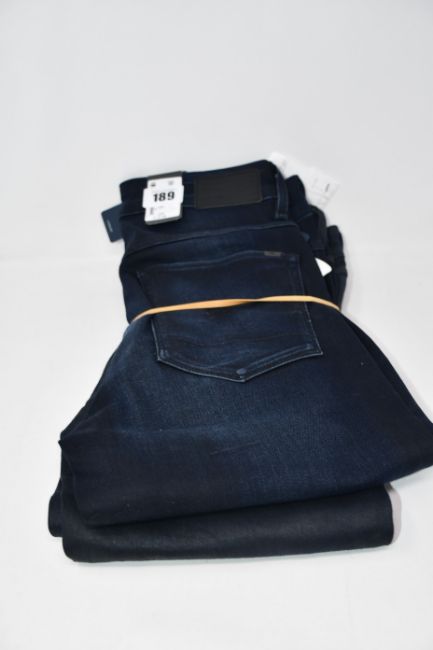 One as new G Raw Knee zip high women skinny jeans (Colour: Worn in tidal cobler. Size 27/32. Model: 5622). One as new G Raw High women skinny jeans (Colour: Dark aged. Size 27/34. Model: 3301).