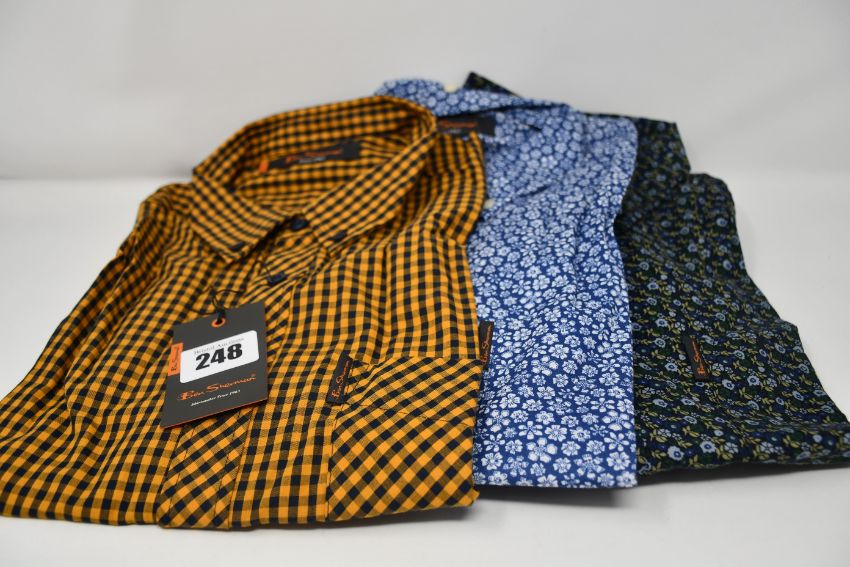 One men's as new Ben Sherman Short Sleeve Gingham shirt size L. One men's as new Ben Sherman Short Sleeve Floral Print shirt size L. One men's as new Ben Sherman Script Long Sleeve Multi Colour Floral shirt size L.