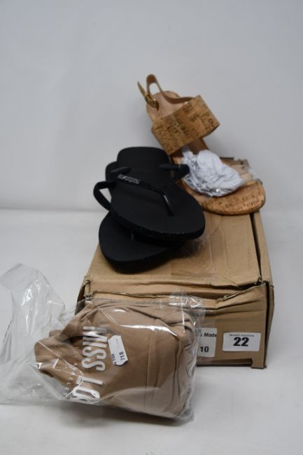 One as new Womens Havaianas Slim Sparkle Sandals size 8. One as new Miss Lola cork high heel sandals size 7.5. One as new Miss Lola Rules Of Love Top size M (Colour: light nude).