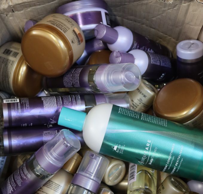 A large quantity of Avlon hair care products to include KeraCare Deep Moisturizing Masque (8oz), AffirmCare Style Right Foam Wrap Lotion (8fl. oz.), AffirmCare Scalp Therapy Treatment Conditioner (32fl. oz.) and KeraCare Thermal Wonder (4fl.oz) (Approximately 40 items).