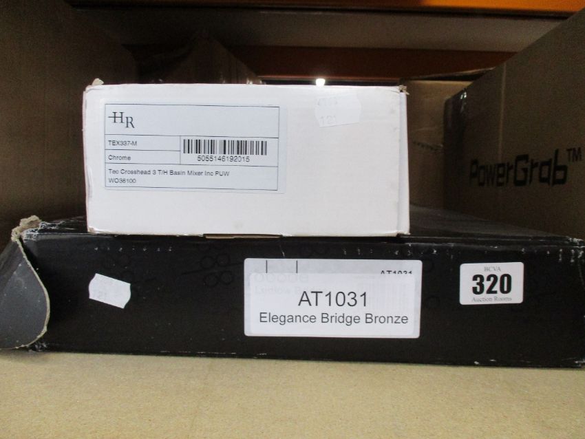 One boxed Abode Ludlow Bridge antique bronze kitchen tap and one boxed Hudson Reed Tec Crosshead 3 Tap Hole basin mixer (TEX337-M chrome).