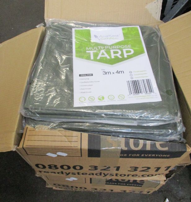 Twenty Anytime Garden Multi-Purpose Tarps (Twelve 3m x 4m and eight 4m x 5m).