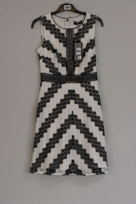 An as new Karl Lagerfeld sleeveless chevron lace dress (Size US 2).