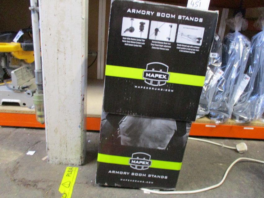 A box of four individually boxed as new Mapex B800 - Armory Boom Stands in chrome finish.