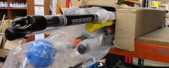 A collection of assorted golf related training equipment to include: one impact slot trainer, alignment rods and weighted swing trainers (Approximately 10 items).