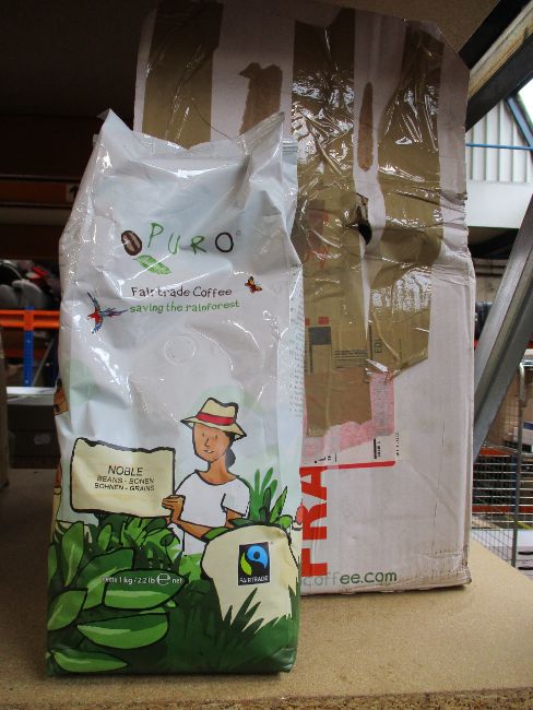 Nine packs of Puro Fairtrade Coffee (Noble 1kg packs, BB 27/08/21).