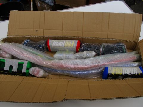 Three sets of as new ProTaper handle bars/grips in blue green and red.