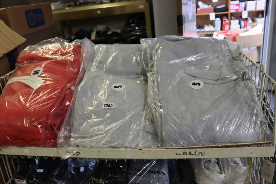 Twenty as new grey hoodies (All S) and five red hoodies (All M).