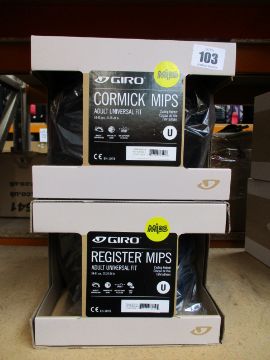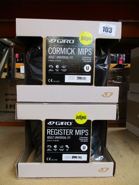 Two boxed as new Giro bicycle helmets to include: one Cormick MIPS (Size: Universal Adult) and one Register MIPS (Size: Universal Adult).