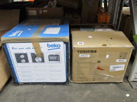 A boxed as new Toshiba MM-MM20P white microwave and a boxed as new Beko mini oven with hob (MSH28B).