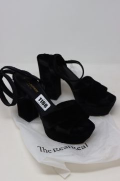 One pre-owned Saint Laurent black velvet platform sandals size 39.5.