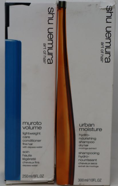 A quantity of boxed as new Shu Uemera hair care products to include Muroto Volume lightweight care conditioner (250ml), Colour Lustre brilliant glaze conditioner (250ml) and Urban Moisture hydro nourishing shampoo (300ml) (Approximately 30 items).