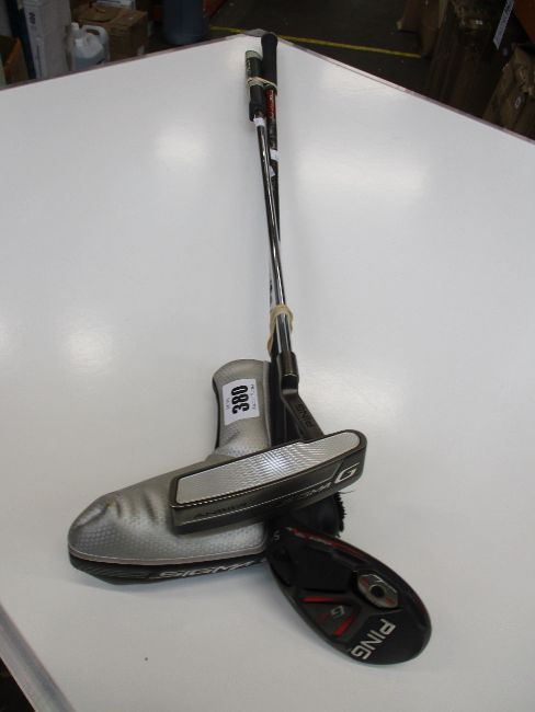 A Ping G410 Fairway Wood right handed golf club and a Ping Sigma G Anser black nickel right handed putter.