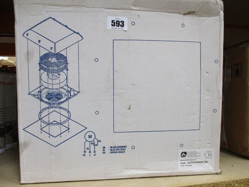 A boxed as new Alpha Electric Roof Fan 600MC/H 115V (ALFATORR0610B).