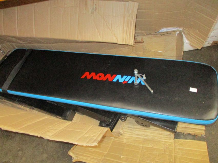 One boxed Winnow folding adjustable weightlifting bench with dip station.
