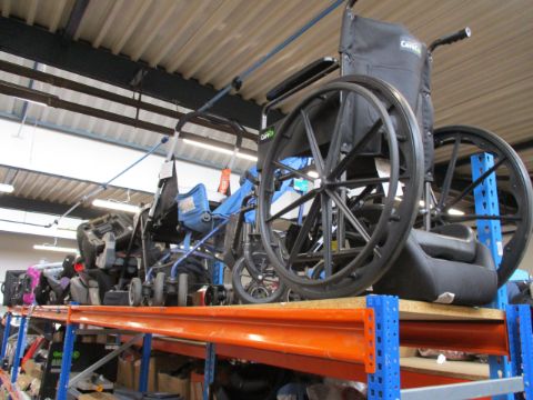 A wheelchair, two buggy/prams and eighteen car seats/booster seats.