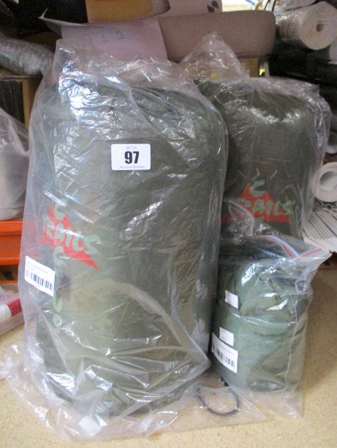 Cactus Jack camping equipment to include: one Cactus Jack sleeping back in olive green, one Cactus Trails sleeping back in olive green/orange and one Cactus Trails portable hammock in olive green/orange.