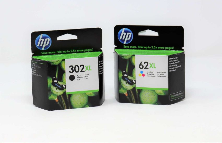 One boxed as new HP 302XL Black Ink Cartridg (P/N: F6U68AE Expiry Date: May 2022) and one boxed as new HP 62XL Tri-colour Ink Cartridge (Magenta, Cyan, Yellow, P/N: C2P07AE Expiry Date: May 2022) (Boxes sealed).