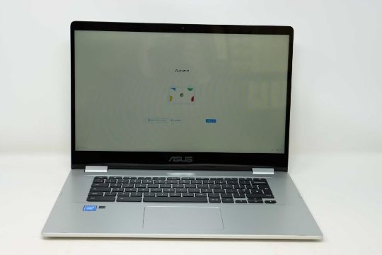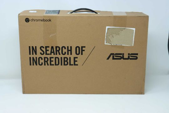 A boxed as new ASUS C523NA 15.6" Chromebook in Silver with Intel Celeron N3350, 4GB RAM, 64GB eMMC running Chrome OS (Model: C523NA-A20057) (Box opened, some cosmetic damage to box).