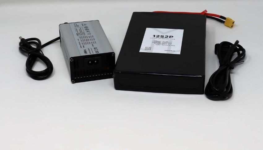 An as new M Boards 12S2P Complete Battery Solution (for DIY electric skateboards) (UK plug adaptor required).
