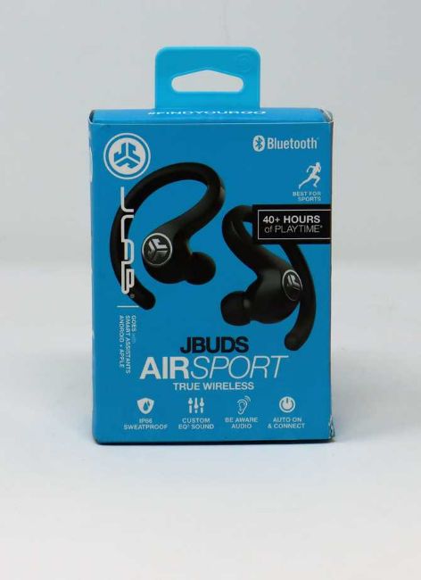 A boxed as new pair of JLAB JBuds AirSport True Wireless Bluetooth Earbuds.