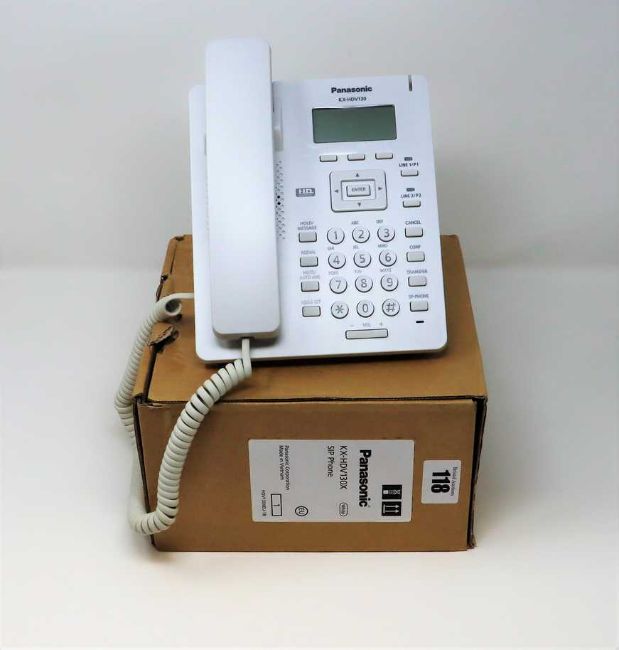 A boxed as new Panasonic KX-HDV130X SIP Phone in White (Box opened, damaged box).