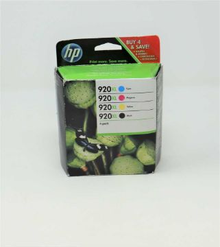 A boxed as new HP 920XL 4-pack High Yield Original Ink Cartridges in Black/Cyan/Magenta/Yellow C2N92AE (box sealed, cosmetic damage to box).