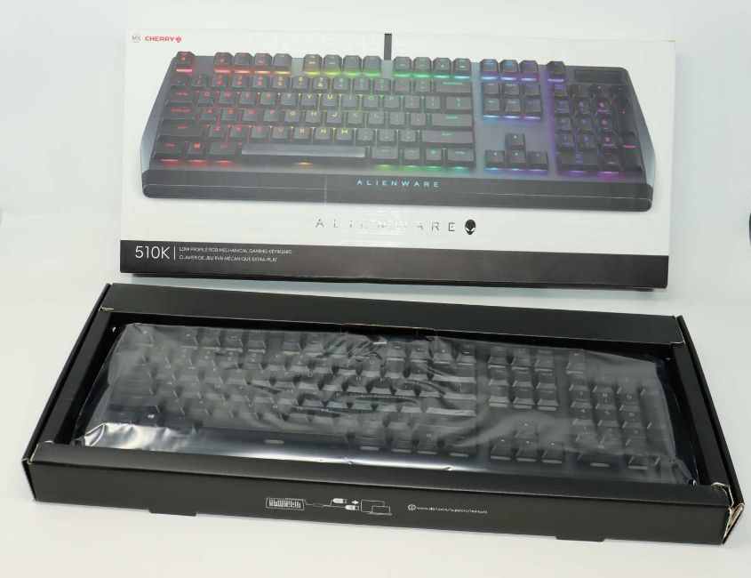 A boxed as new Alienware 510k Low Profile RGB Mechanical Gaming Keyboard (box opened).