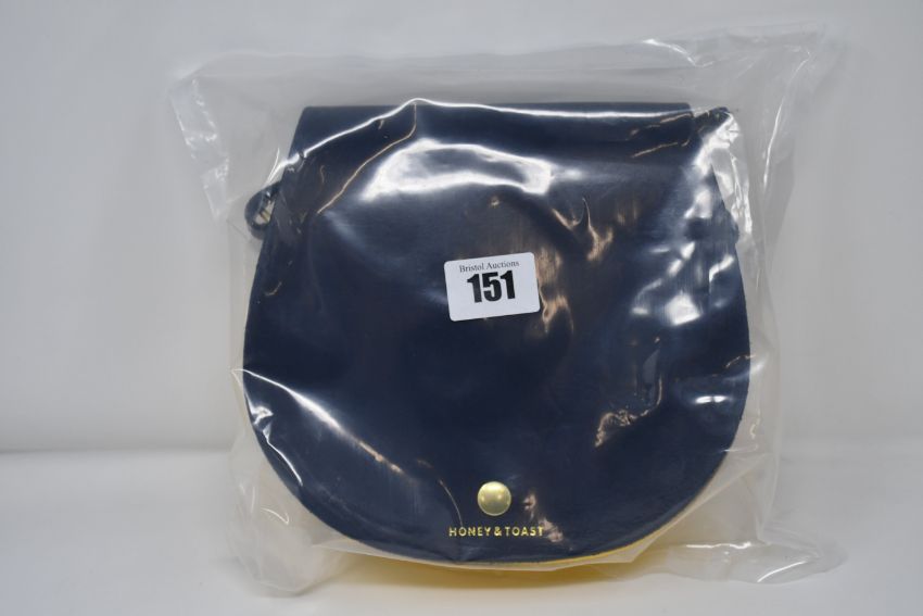 An as new Honey & Toast Etter leather saddlebag handbag in navy and sun yellow (RRP £120).